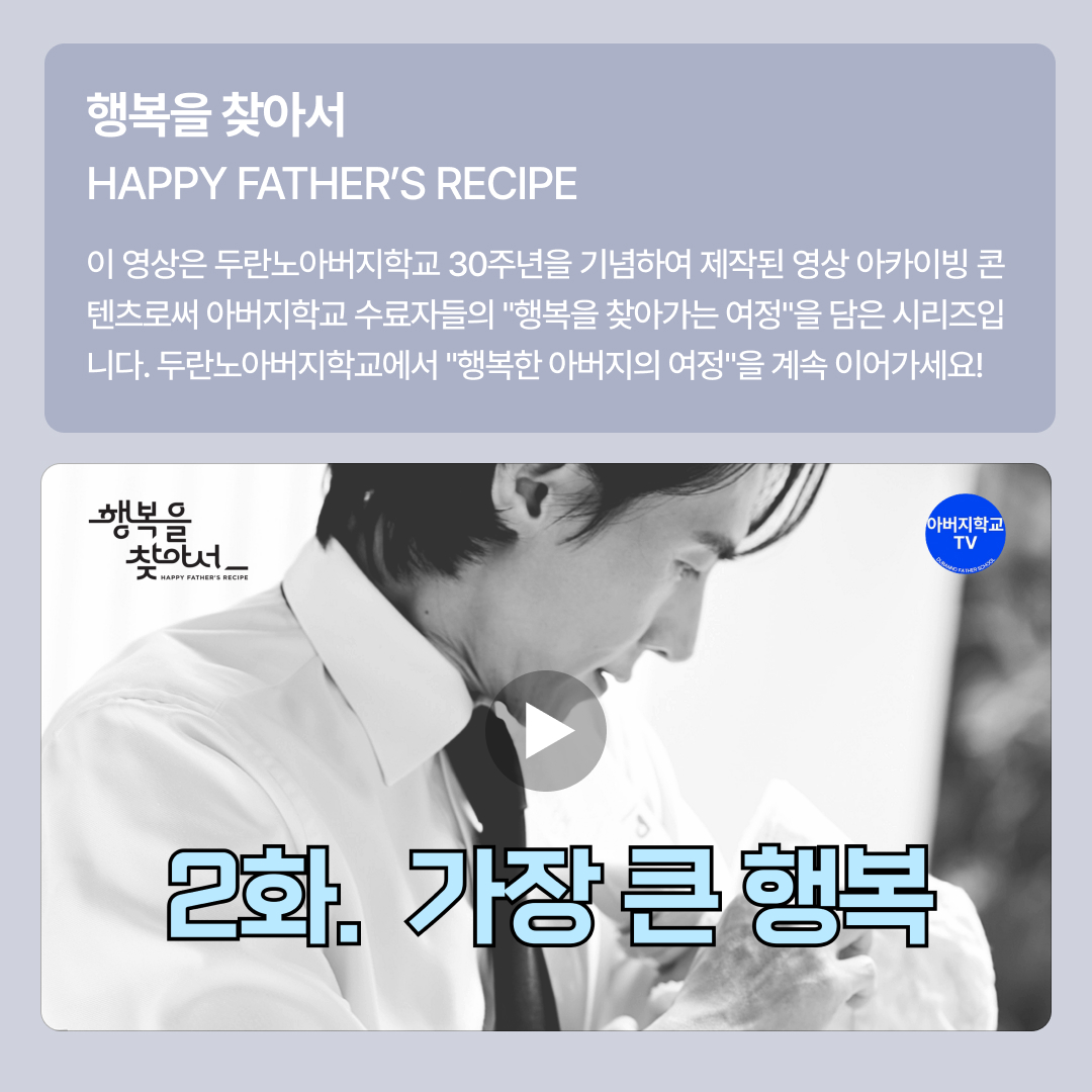 “아름다운 세상, 행복한 가정”을 꿈꾸는 아버지 여러분을