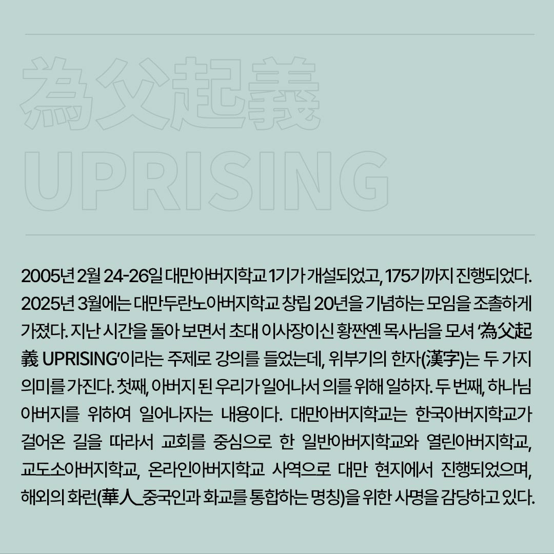 #대만아버지학교 #업라이징 #아버지의행복한가정레시피 #신경철 #양산17기 #최창환 #수료소감문