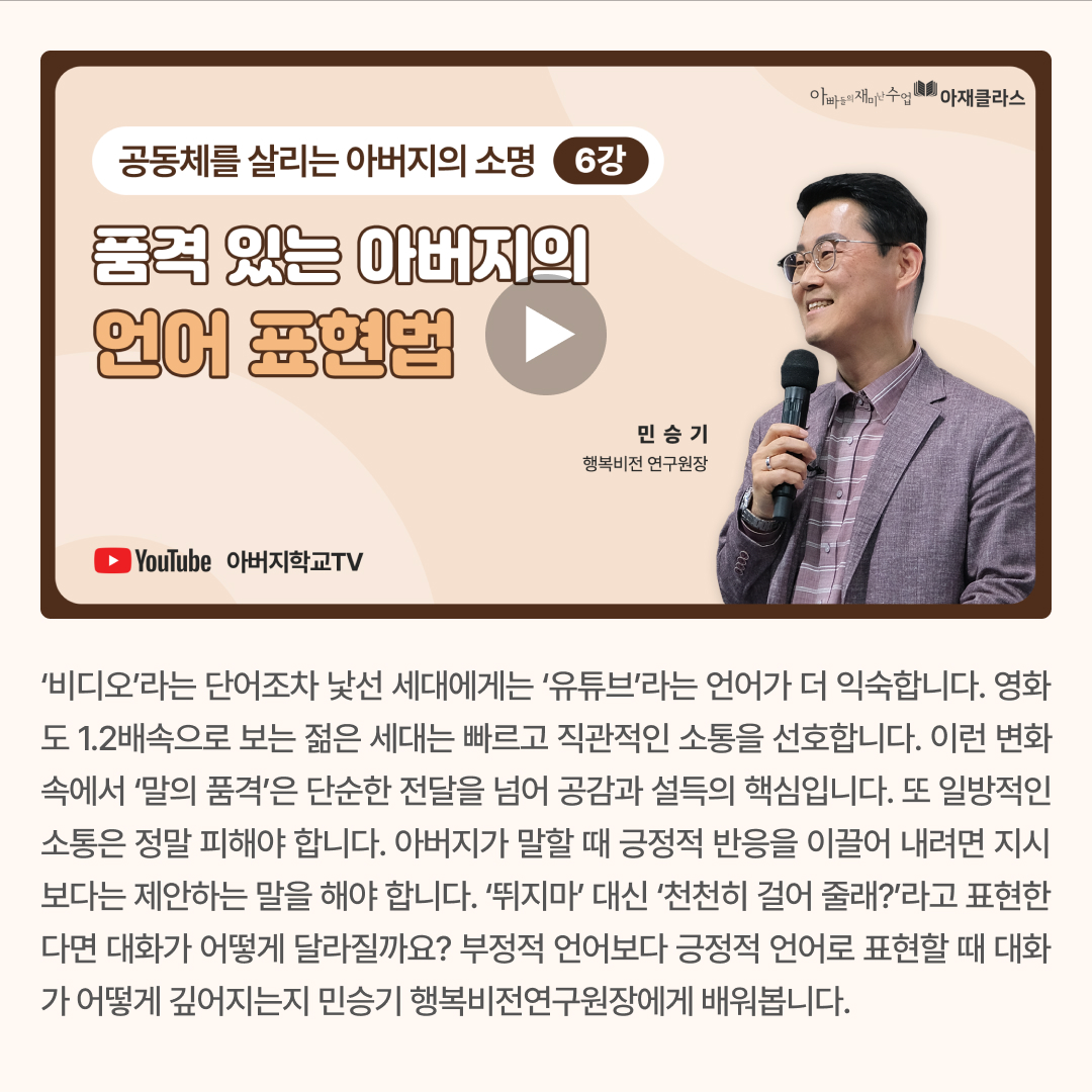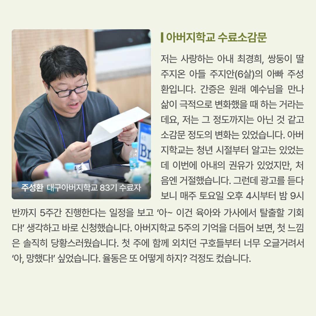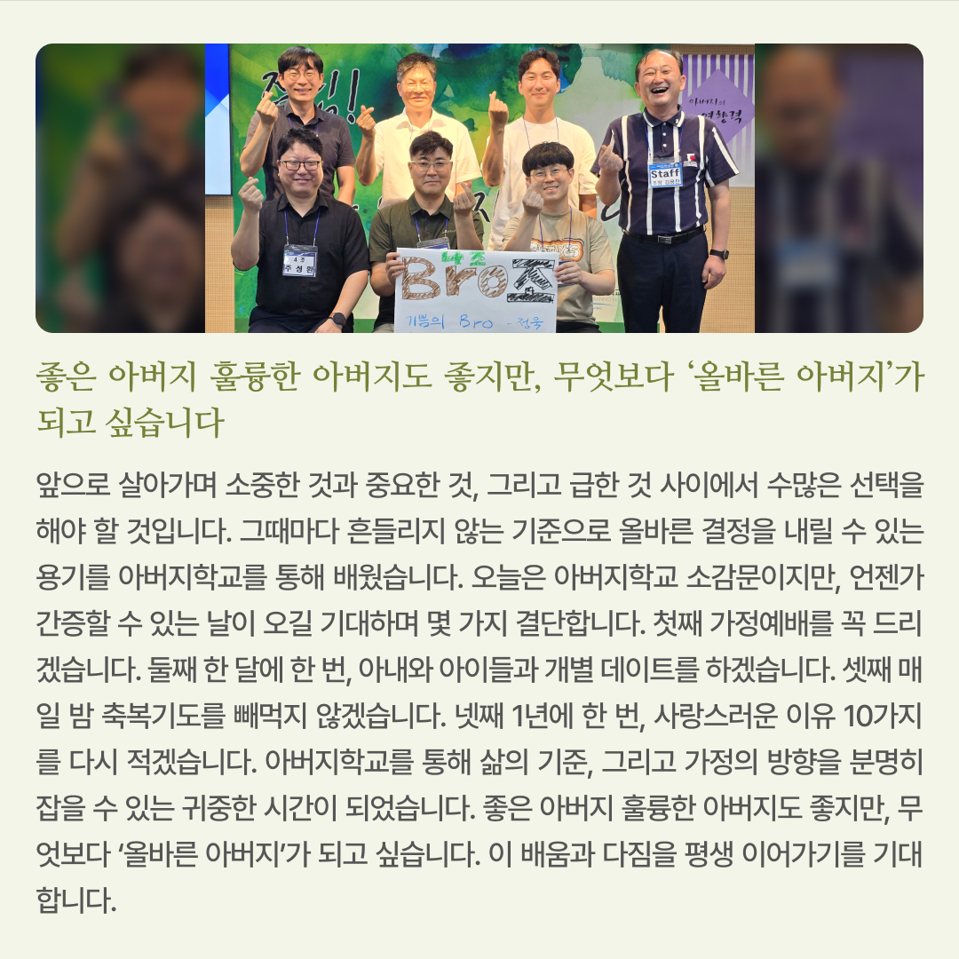 “아름다운 세상, 행복한 가정”을 꿈꾸는 아버지 여러분을