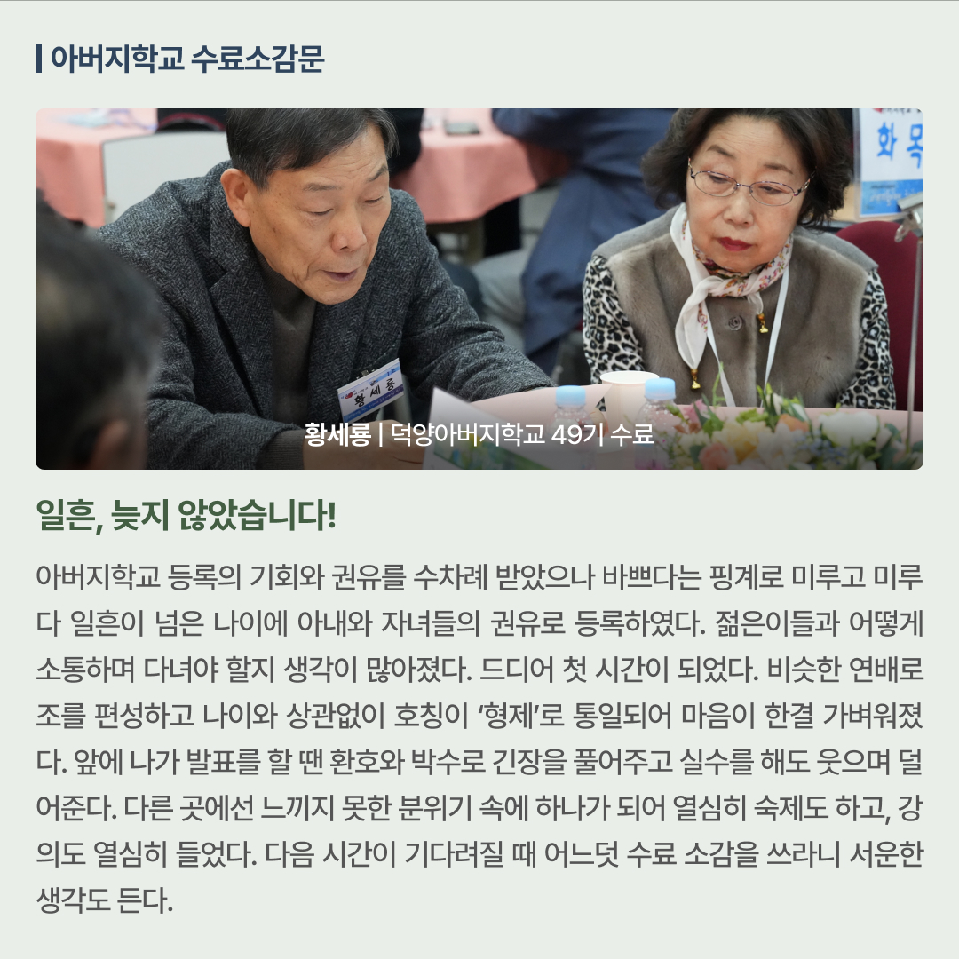 “아름다운 세상, 행복한 가정”을 꿈꾸는 아버지 여러분을